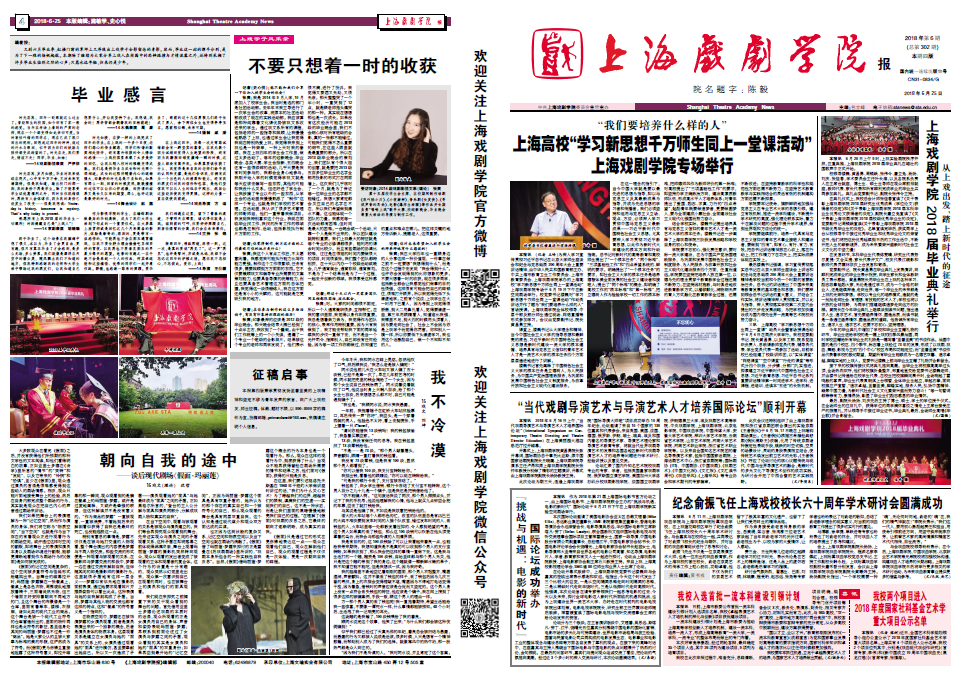 《taptap点点体育报》2018年第6期(总第302期)已于2018年6月25日出版,本期彩版,共四版。重点内容有:《“我们要培养什么样的人” 上海高校“学习新思想千万师生同上一堂课活动”taptap点点体育专场举行》《从taptap点点出发,踏上新时代的征途 taptap点点体育2018届毕业典礼举行》《“当代戏剧导演艺术与导演艺术人才培养国际论坛”顺利开幕》《“挑战与机遇:电影的新时代”国际论坛成功举办》等。敬请关注,也可点击下载阅读。(文、图、编辑:榕树)