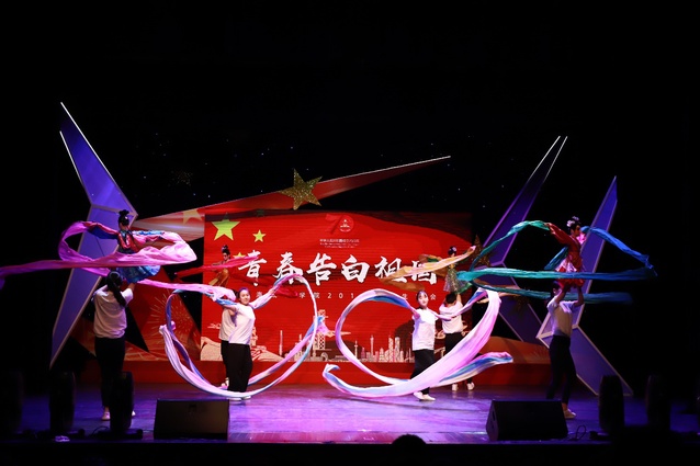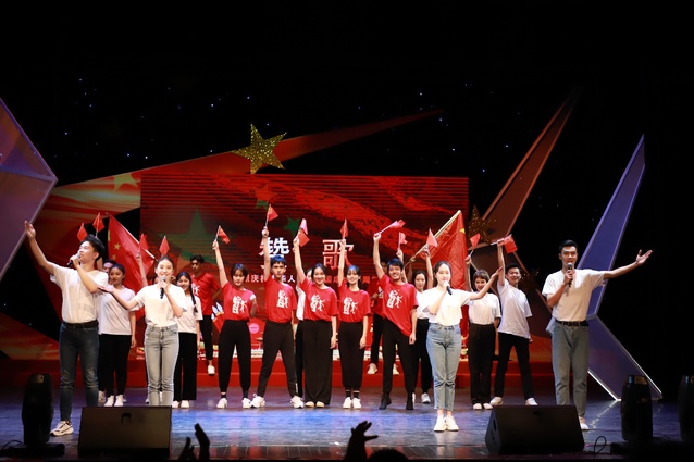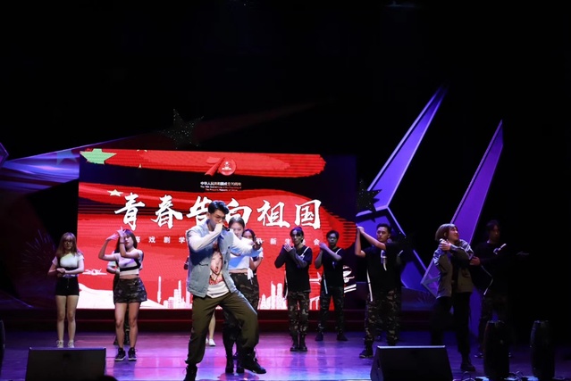 电影电视学院的同学们用一支歌舞《攀登者》向祖国献上七十周年的礼赞。激情洋溢的歌声,活力四射的舞蹈,新时代青年用自己的个性色彩向祖国致敬。