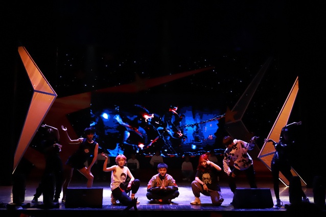 创意新媒体秀《最美中国故事》将舞蹈和数字屏幕、中国古乐与电音元素结合。创意学院的同学们把动画制作的过程在舞台上演绎出来,舞蹈演员和幕后人员在舞台上的交错站位犹如次元穿梭,让我们为国漫制作的匠人精神感动。