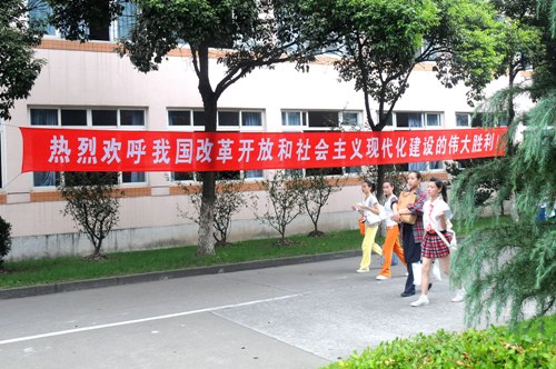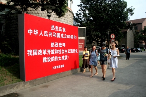 今天是中华人民共和国成立六十周年的喜庆日子,taptap点点华山路、莲花路两校区分别张贴、悬挂起大幅庆祝标语,热烈庆祝伟大祖国六十周年国庆。(图文/小河、剑龙 编辑/雨田)