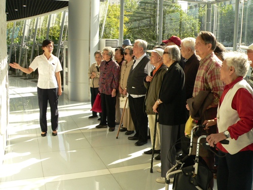 短短一个上午,老同志们分别参观了杨浦区城市规划展示馆、国歌展示馆、复旦大学新江湾城校区以及五角场商业区,分别从远景规划、历史文化和实地考察三个角度感受到杨浦区发展的日新月异和与时俱进,并对此赞叹不已。离休干部陈加林老师说:“今天的参观让我印象很深,尤其是国歌展示馆。国歌是每个中国人都耳熟能详的歌曲,但是能说清国歌来龙去脉的人却不多。国歌展览馆借用高科技多媒体的表现形式,通过400多件文物、文献和历史照片,以及360度环形影院,全面展示了《义勇军进行曲》的诞生过程、国歌确定等背景知识,用声情并茂的表达方式把历史教育‘教活了’,这可以说是有史以来我看过的最生动的展览。”周鸣,这位陪同老干部参观的80后年轻人表示,这次实地考察杨浦区,对出生在上海的80后触动也很大。“我们在成长,上海也在成长,从昨天看今天,从今天看明天,我们不难预想,未来的上海一定会更美好!我们的祖国一定会更强大!今天的参观对我们每一个人来说都是一次很好的爱国主义教育!”