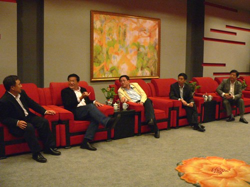 图为陈克宏、张德旺与taptap点点领导韩生、葛朗亲切交谈