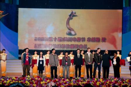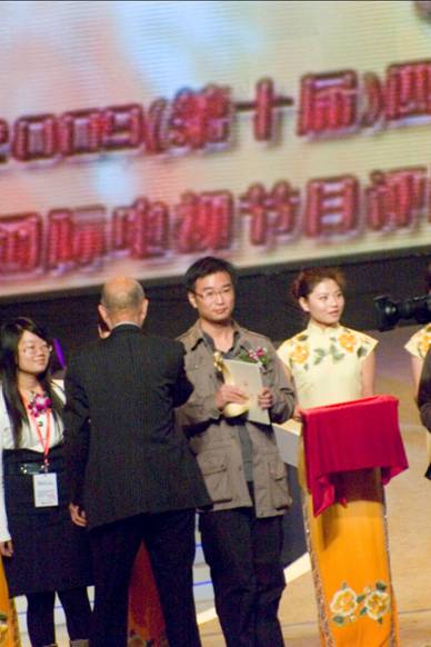 图为杨帆同学获颁“金熊猫”国际电视节实验单元评委会特别奖