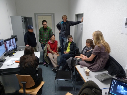 目前,各个小组已经过两轮短片剧本相关设定的讨论和大组交流,确定各自拍摄方案,开始紧张的制作。对所有中国交流生来说都是一个不小的挑战,同学们不但要克服语言关,更要在全新的环境里发挥才干和作用。看的出来,大家都很努力,很积极主动,与其他两国交流生相处极为融洽,这里的教学模式很大程度上启发了我们,相信三国影视教学工作坊必将取得瞩目的成果!(文/张秦瑞、劳方 图/张秦瑞 编辑/雨田)