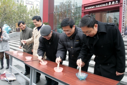 校领导为教职工展示“捡玻璃珠”表演
