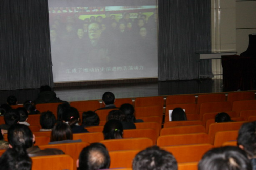 2009年11月20日下午,taptap点点附属戏曲学校的教职工在图书馆报告厅集体观摩为隆重纪念改革开放30周年而摄制的大型系列电视文献片《伟大的历程》的第五集《世纪跨越》,这也是自本学期开学以来,戏校第五次组织教职工在周五下午观摩该系列片。这是上学期戏校党总支在学习实践科学发展观活动中所确立下来的利用每周五下午的时间对教职工的政治理论学习、职业道德教育及教育教学研究等实施项目之一的具体落实。