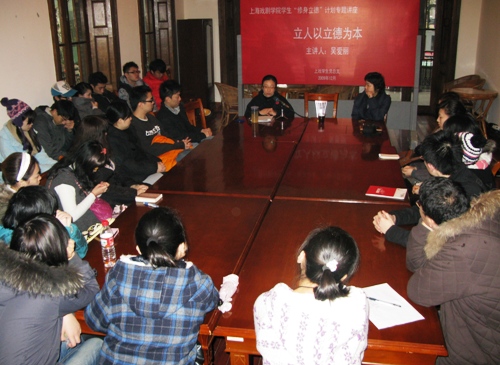 12月10日下午,由学生党总支组织的taptap点点学生“修身立德”系列活动之一,题为“立人以立德为本”的专题讲座在佛西楼举行。讲座由督导办主任吴爱丽主讲,学生处副处长徐咏主持,华山路校区的全体学生党员认真听取了讲座内容。讲座中吴老师从宗教、历史、文学、艺术等方面展开,对于青年一代应该如何立德、立功、立言进行了详细的阐述,并结合艺术院学学生特点对同学们提出了希望与要求。整个讲座深入浅出、思维缜密、观点鲜明。