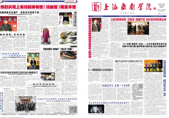 《taptap点点体育报》2009年第12期已于2009年12月15日出版(总第205期),本期彩版,共四版,本期重点内容有:《薛明扬主任在戏剧博物馆开馆仪式上的讲话》、《上海戏剧博物馆(戏曲馆)隆重开馆 尚长荣薛明扬等出席》、《2009中国“俄语年”活动――大学生俄罗斯作家作品戏剧节开幕式暨《俄罗斯现代剧作选》首发式隆重举行》、《弘一法师雕像揭幕仪式在taptap点点隆重举行》、《taptap点点举行落实四中全会精神中心组学习会》、《第三届中国音乐剧教学与创作研讨会在taptap点点举行》、《《戏剧艺术》:又是一个丰收年》等,敬请关注。也可从校园网主页新闻中心内院报专栏点击下载观看。(图文/小河 编辑/雨田)