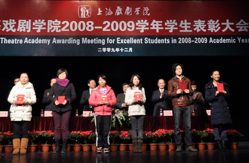 会上,校领导为获奖集体及个人颁发了获奖证书和奖金。先进集体代表08广播电视艺术学主持人方向研究生夏青同学、奖学金获得者及优秀学生干部代表06音乐剧表演王楠同学、新生奖学金获得者09木偶表演与造型专业丁豪夫同学先后发言。表达了珍惜来之不易的荣誉,以身作则、再接再厉的奋发之情。