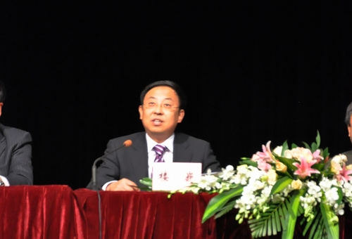 图为党委书记楼巍在表彰大会上讲话