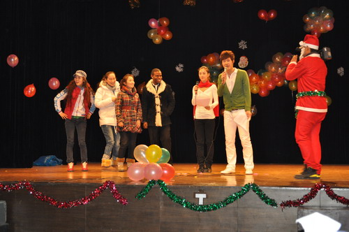 红楼楼道两旁粘满了彩色气球,鲜艳的条幅上写满对2010年新年祝福和对上海世博会的美好祝愿。在强劲的音乐鼓点和浓浓的喜庆气氛中,表演系系主任龙俊杰老师、党支部副书记王学明老师,辅导员陈莹老师、薛光磊老师,全校各院系学生以及来自同济大学、东华大学的同学们陆续来到了会场,欢歌笑语弥漫在整个会场,让身处其中的老师和同学们热血沸腾。