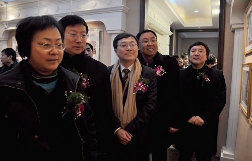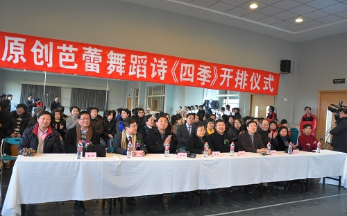 图为领导和嘉宾观看大型原创芭蕾舞蹈诗《四季》开排