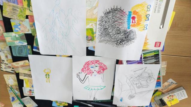 随后,每位同学进行“自画像”创作,并一一进行描述和解释,从作画内容,方式,大小以及颜色上能感受到,画作就如同他们自身,各具特色。