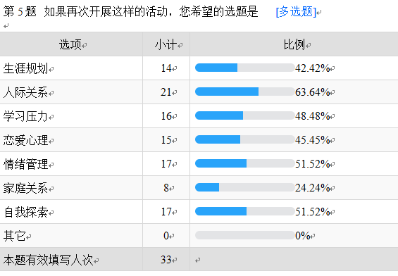 很多同学希望多一些团辅活动,并且设计的心理学知识多一些,更深入一些…