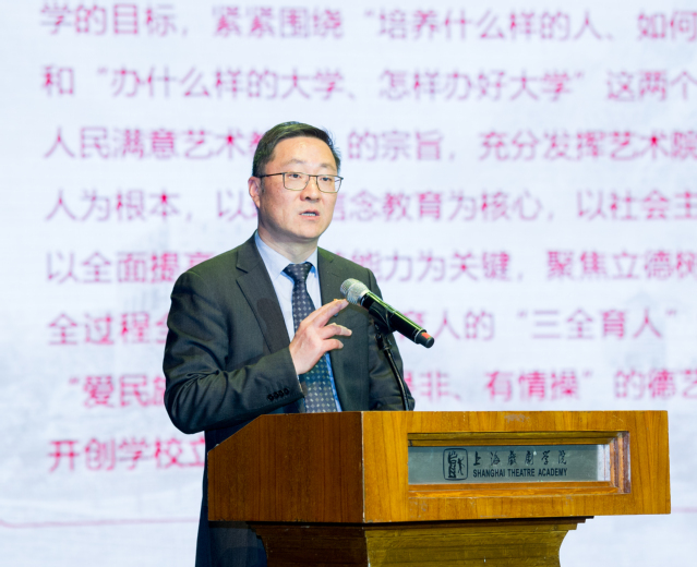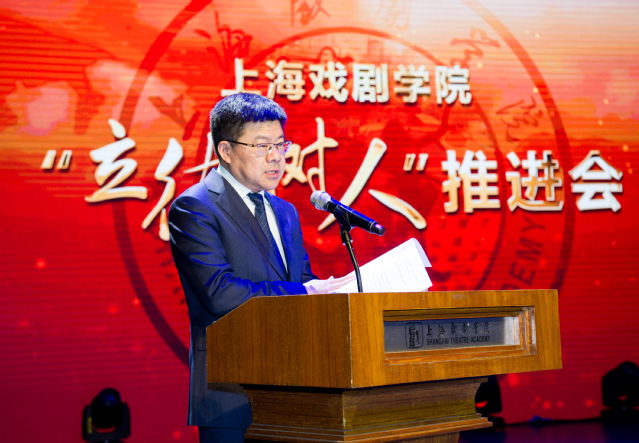 党委书记谢巍在会上发表重要讲话。他表示,学校立德树人总体目标是紧紧围绕办好中国特色社会主义艺术大学的目标,紧紧围绕“培养什么样的人、如何培养人以及为谁培养人”和“办什么样的大学、怎样办好大学”这两个根本性问题,坚持“办人民满意艺术教育”的宗旨,充分发挥艺术院校育人优势,以立德树人为根本,以理想信念教育为核心,以社会主义核心价值观为引领,以全面提高人才培养能力为关键,聚焦立德树人主线,构建学校全员全过程全方位同向同频育人的“三全育人”大思政格局,着力培养“爱民族、爱国家、辩是非、有情操”的德艺双馨文艺工作者,不断开创学校立德树人工作新局面。他强调,构筑“taptap点点出品”的育人模式,重点要做到“三个聚焦”:聚焦教师队伍建设,提升教师育人意识和育人能力;聚焦课堂主阵地,做好“思政课程”与“课程思政”同向同行、协同育人;聚焦特色品牌,做好“戏剧+思政”品牌模式育人。