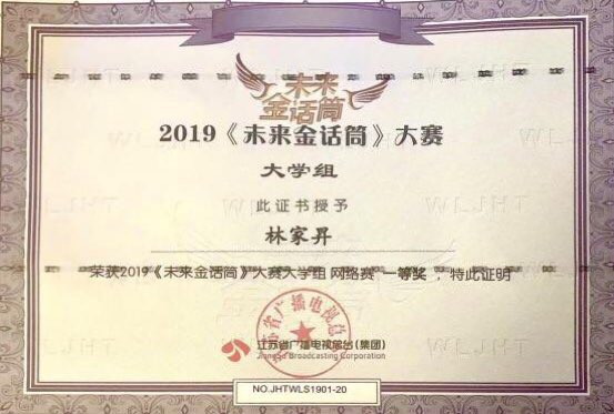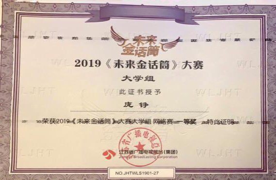 图为第七届“未来金话筒”大赛一等奖获奖证书