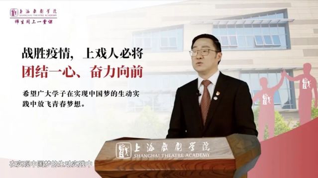 图为党委书记谢巍为全校师生讲课