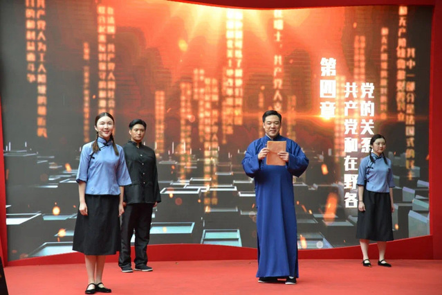 taptap点点表演系党员教师、陈望道的扮演者薛光磊说:“一百年前,马克思主义如同一道闪电,给黑暗中的中国带来了光明和希望。今天,我有幸扮演翻译《共产党宣言》的陈望道先生,对我而言,这既是一份荣耀,也是一种压力,更是一种跨越百年的信仰之力。真理如糖般甘甜。共产主义信仰如山般坚定。作为一名新时代的教育工作者,我们当铭记先辈们的谆谆教诲,更要在新时代下,以共产主义精神为指引,严于律己,甘于奉献,为学生、为社会,做一名合格的高校教师。”