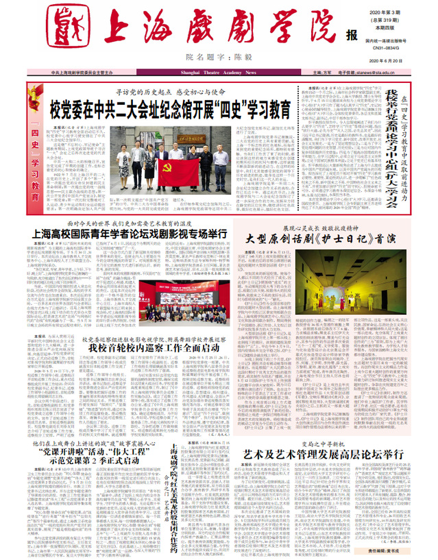 《taptap点点体育报》2020年第3期(总第319期)已于2020年6月20日出版。重点内容有:《寻访党的历史起点 感受初心与使命 校党委在中共二大会址纪念馆开展“四史”学习教育》《在“四史”学习教育中汲取前进动力 taptap点点举行党委理论学习中心组(扩大)学习会》《面对今天的世界 我们更加需要艺术教育的温度 上海高校国际青年学者论坛戏剧影视专场举行》等。敬请关注,也可点击下载阅读。(文、图、编辑:榕树)