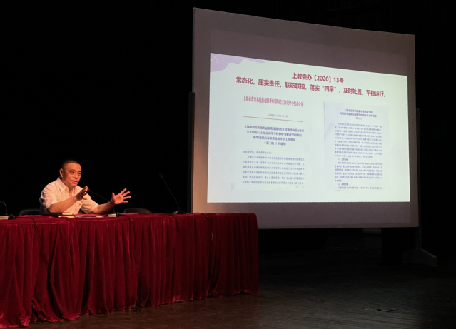 会议开始,张伟令副书记首先传达了《上海市高等学校和中等职业学校防控新型冠状病毒肺炎疫情开学工作指南(第三版)》文件精神。他指出,要深入学习贯彻习近平总书记对疫情防控工作的重要指示批示精神,围绕上教委办[2020]13号文件要求,各部门必须切实做好常态化疫情防控工作,精心谋划、细致安排开学工作,确保秋季学期各项工作有序开展。在思想上要持续高度重视,抓牢“防控”这根弦不放松。