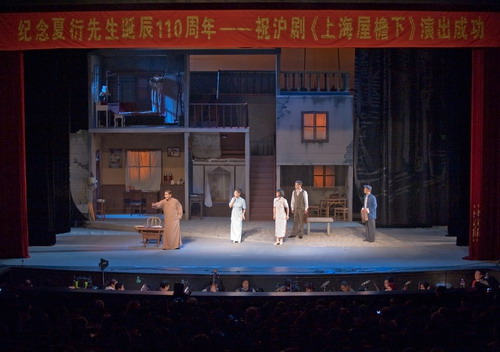 大幕拉开,一幢有客堂间、前楼、灶披间等组成的二层楼“石库门”出现在舞台上,一段发生在上世纪二三十年代上海一幢石库门房子里的几户人家悲欢离合的故事也由此展开。沪剧《上海屋檐下》由吴梅影、顾春荣和李恩来分别扮演杨彩玉、林志成和匡复,青年演员朱桢、黄爱忠等也在剧中出演重要角色。