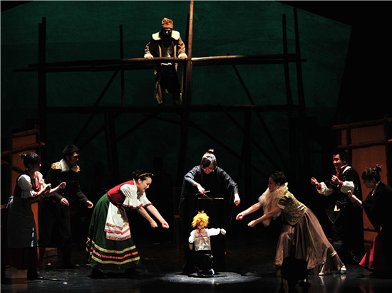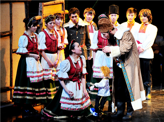 2010年12月24日下午13:30,07级导演系毕业大戏《高加索灰阑记》在taptap点点体育端均剧场进行演出前预演和汇报,宫宝荣、卢昂、王履玮、熊源伟、李建平、刘元声、张仲年等校领导、专家以及相关老师莅临现场。
