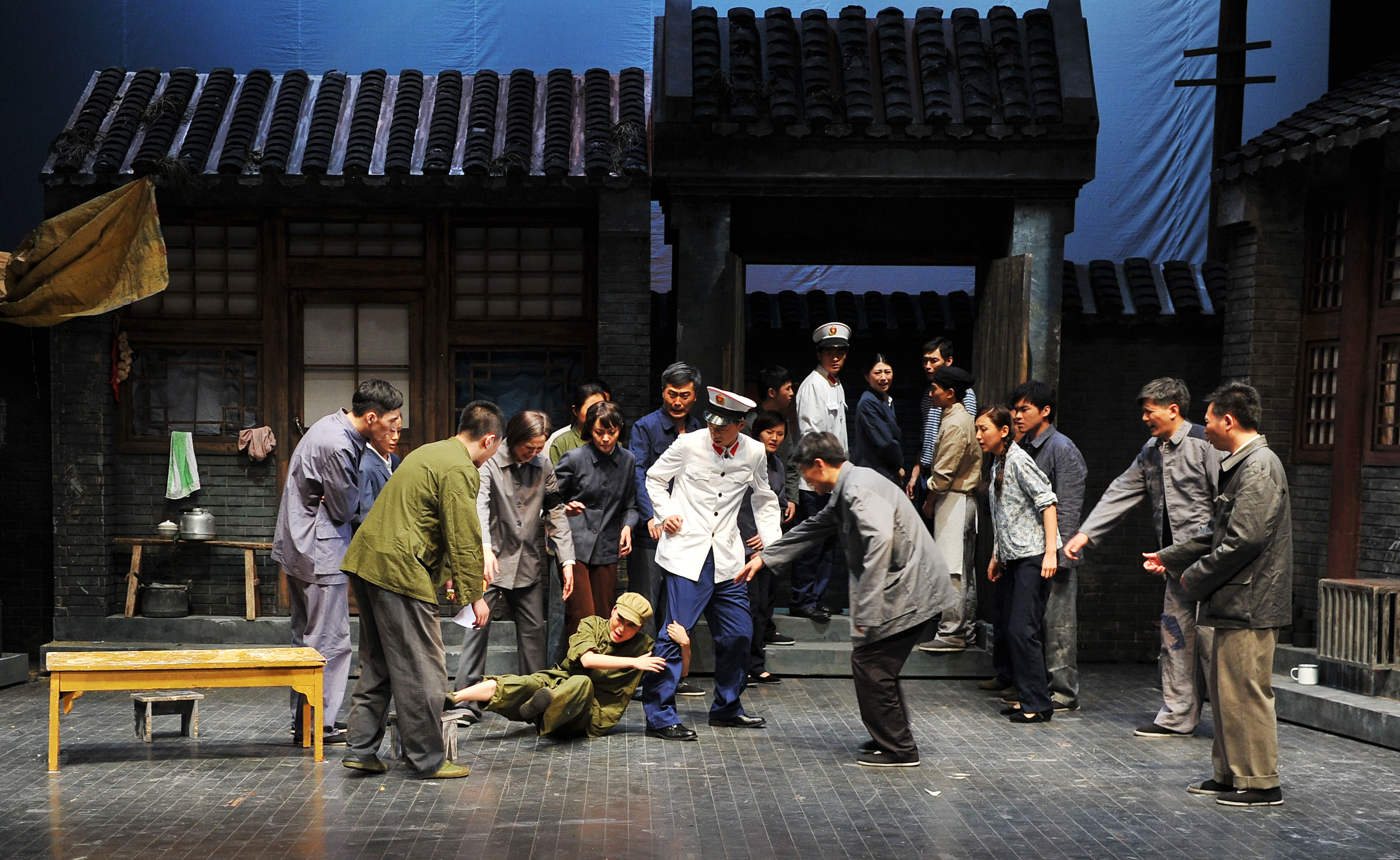 看完《小井胡同》之后,我的脑海里立刻回想起先前的两部现实主义力作:《茶馆》与《芙蓉镇》。以微小的视角,运用群像的方式,紧扣时代脉搏,给人以深沉的思考。在形式方面,《小井胡同》与《茶馆》类似,以胡同的“不变”来折射出世道的“变”与进步。全剧共为五幕,中间三幕皆是在院内发生,集中讲述了“大跃进、文革、拨乱反正”这三段历史里面人物的喜怒哀乐。而第一幕和最后一幕则是在院外发生。第一幕以即将解放的北平为背景,表达了广大人民渴望获得自由与新生活的诉求;最后一幕展现了人民行使当家作主的权利,运用民主意识为自身谋求更多的幸福与美好。如此的设计既能首尾呼应,又使人感到历史是由人民去书写的,历史人物的功过是非自有定论。