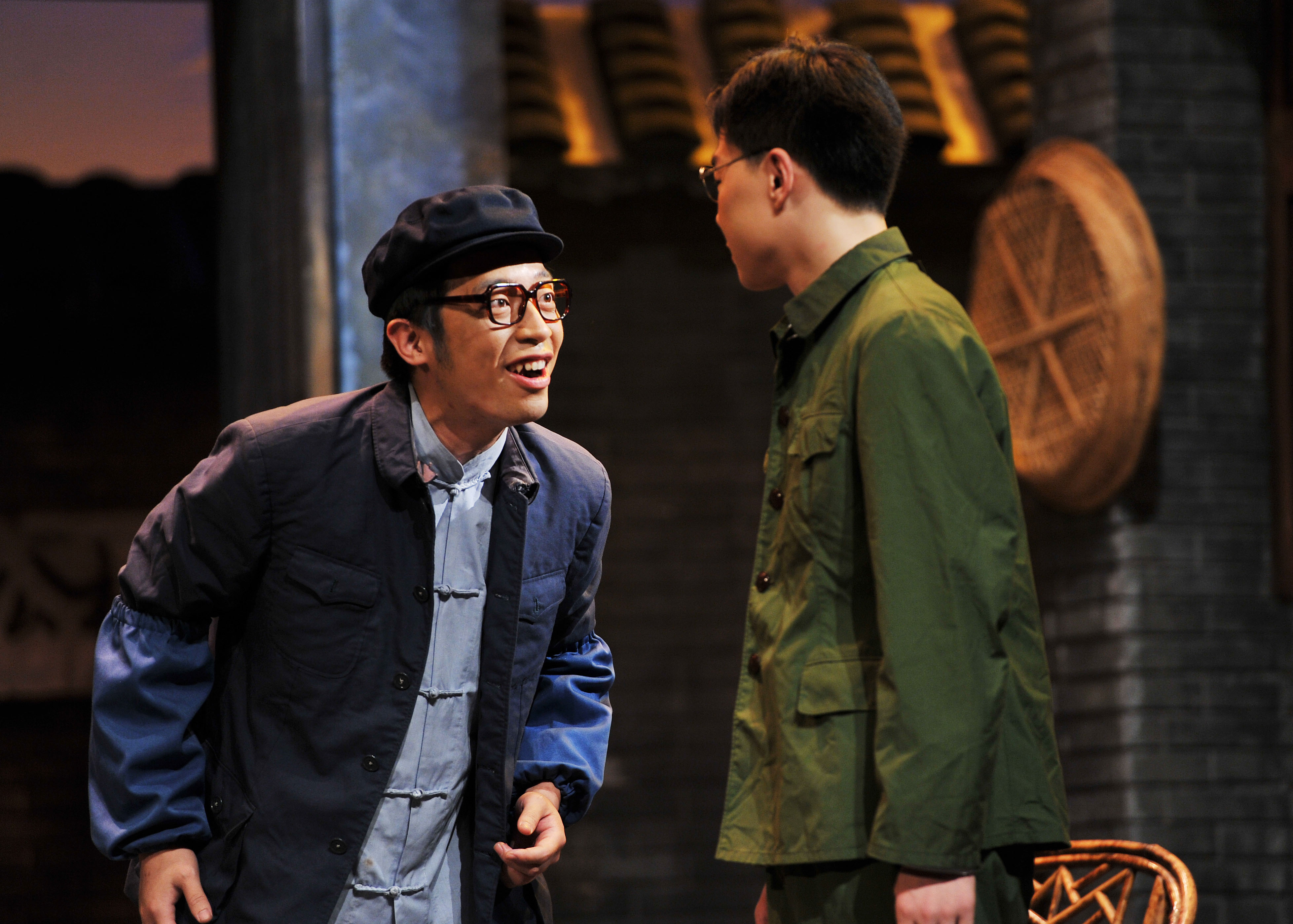 《小井胡同》是一出不折不扣的京味儿话剧。每一句台词,都洋溢了底层劳动人民对于生活最质朴的表达。无论是喜是悲,他们都用大嗓门、丰富的比拟、听着有趣的“儿化音” 淋漓尽致地展现。我不禁想起关于老舍小说的定义:如果不是老北京人,则不会真正明白老舍小说里的幽默。这种风格同样被带进了《小井胡同》之中。虽然我不是北京人,但我从身旁观众三五分钟脸上会心的微笑看出,每句台词都充满了实实在在地京片儿味。同时,《小井胡同》不仅台词方面独树一帜,也擅长喜剧性。在表现“文革”的一幕中,导演运用殡仪馆的假电话来调侃专横无礼的反派角色,一句“我们这车就没空载过”立马逗笑了在场所有的观众。剑拔弩张的戏剧情境瞬时烟消云散,缓和了严肃话题的敏感与紧张气氛。可以说,这些喜剧元素的加入,犹如润滑剂,很好地把客观史实与人民生活紧密地结合起来。使之既不沉重,也不会过于轻佻。让观众在观看时获得一种微笑的思考体验,避免了痛述历史导致的压迫感与说教行为,显得相当自然真诚。从某种意义而言,这种喜剧元素的运用是更为高级的打断与铺垫。