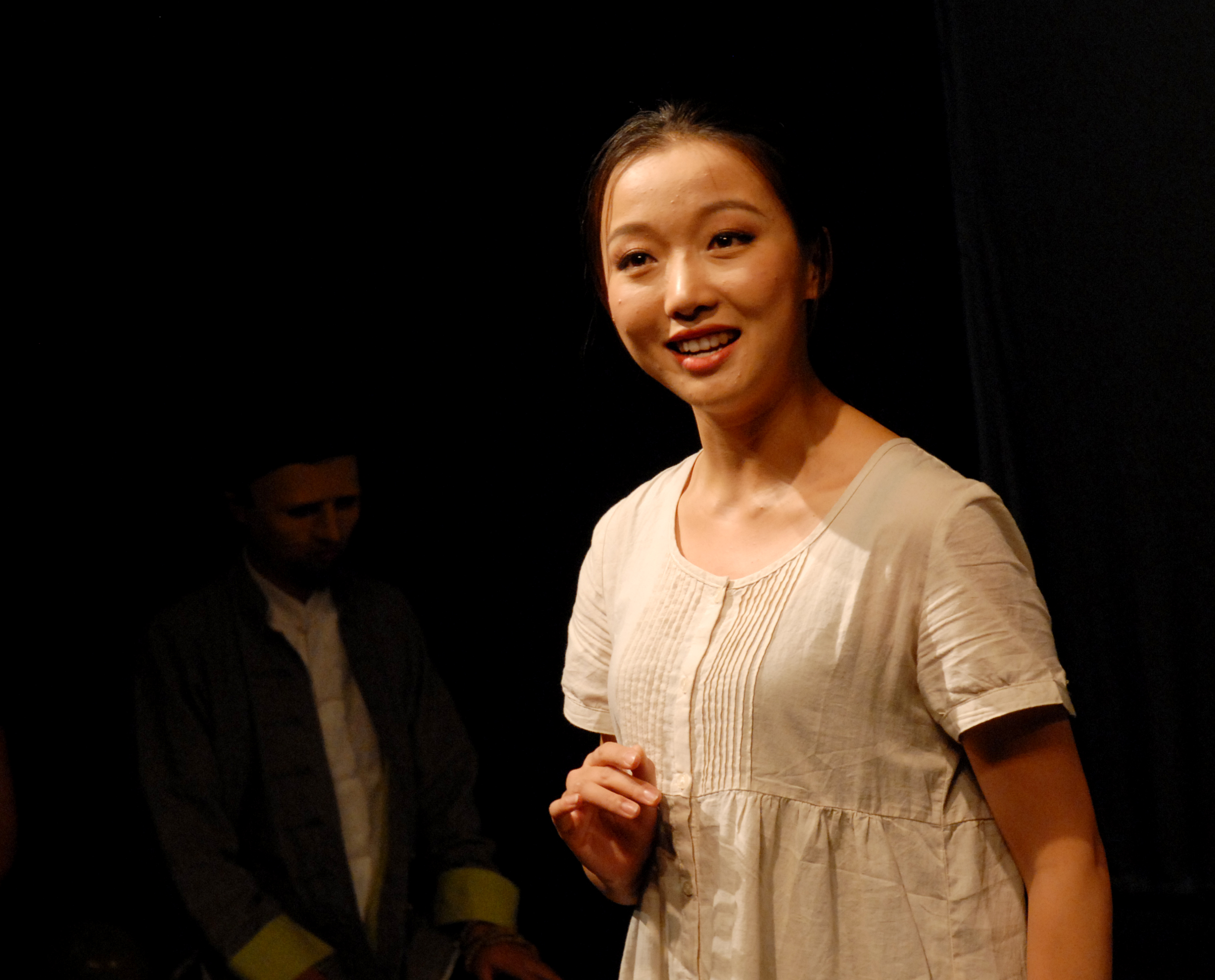 于是我后来在集体交流后找到了适才回答观众问题创作者史航先生。当史先生听到我问他你为什么要让沈黛一无所有,重新定位大学生于标,至少给他留有得知妻子怀孕可以悔悟与妻子站在一起的性格余地,你给她一份爱情,至少整出戏在黑暗中还有依稀光亮,只要给她一份爱情一份支持,你的戏再悲惨也有积极的意义。他的回答很自信:“难道你指望于标这样的陈世美幡然醒悟吗?你要知道,如果沈林老师选择一个温情尚存的结局…是一种逃避,是不负责。也不是布莱希特会给的权利。”我追问他难道你不清楚你的沈黛被你彻底毁掉,就等于失去了带给观众感动的机会,也没有改变他们的可能?他说:“我让观众感动了,给他们一个他们满意的结局。他们就会回避。但如果我把问题抛给他们,他们至少会愤怒。”我又问他现在观众所处的社会的其实麻木性很强,他们本身就对丑恶并不陌生,甚至更相信丑恶。对于失去信仰缺乏原则的社会,愤怒并不是好东西。他告诉我:“什么样的观众出剧场还是那个样子。戏剧不该向宗教那样教化观众,但要求他们直面事物原本面貌,从而面对自己,拷问自己。”这番耐心解释使我开始对他产生认同。他进一步告诉我,他把一个水瓶砸烂,水四处流泻,那就让观众看见这种无序性。我不能因为自己的价值取向而强硬用艺术手段使观众看见它流成一条次序井然的水流。这是布莱希特对他的影响。他语重心长的建议我不要养成让观众绝望他们就觉得完蛋了的思维模式,就让他们愤怒,让他们彻底绝望以后他们会看清跟多,最后留下的空间哪怕再小不要去担心,只要这空间可以生存下来,它便会以你想不到的方式反弹。
