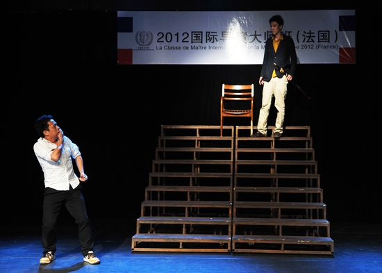 接着,瓦耶曼与弗兰索两位老师轮流为学员们读解剧本《熙德》,方便本周的教学工作。同学们拿到剧本后便自告奋勇的上场尝试演绎剧中的人物,面对大段的译文表演时显出了些许的吃力,希望通过五天的训练能够在周五为大家呈现一场精彩的成果展示。