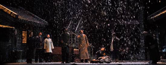 作为08表演的毕业大戏,我们看到的是一个个活生生的人物在舞台上淋漓尽致地展现了解放前每一个小人物内心的真实写照,每个人物的性格都十分鲜明,甚至在舞台上可以形成对立,这样才使每一句台词都能有声有色。除了表演部分,在导演方面,舞台的调度和整体的改动也将这个冗长的故事和每个人物内心的纠葛表现的十分清晰,通过一件件事情的发现,一个个矛盾的抛出,将所有与窝头会馆有关联的人物命运都穿插在了一起,最主要的事,在临近尾声时,那漫天雪花下,观众感受到了那样一种悲凉而凄惶的氛围,在内心里感动和流泪。(文:学生记者 徐缘缘 图:学生记者 杨立原 编辑:榕树)
