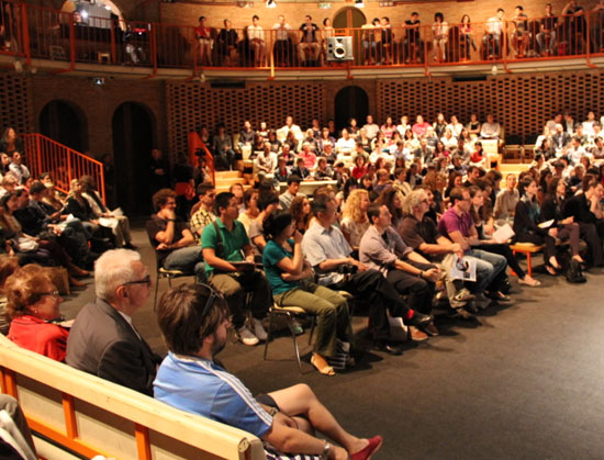 2012年6月13日晚8时,位于米兰市中心的Piccolo剧院Teatro Studio剧场已经是座无虚席,米兰国立大学孔子学院师生们,以及米兰各届对中国传统文化感兴趣的观众急切等待着演员登场。随着地道的锣鼓声缓缓响起,“孔夫子”悠扬的唱腔立刻在剧场里激荡开来,五彩斑斓的演员服装让观众们眼花缭乱,流畅娴熟的武打动作好似龙飞凤舞,观众们惊叹连连,无比真切地感受到中国戏曲的独特魅力。