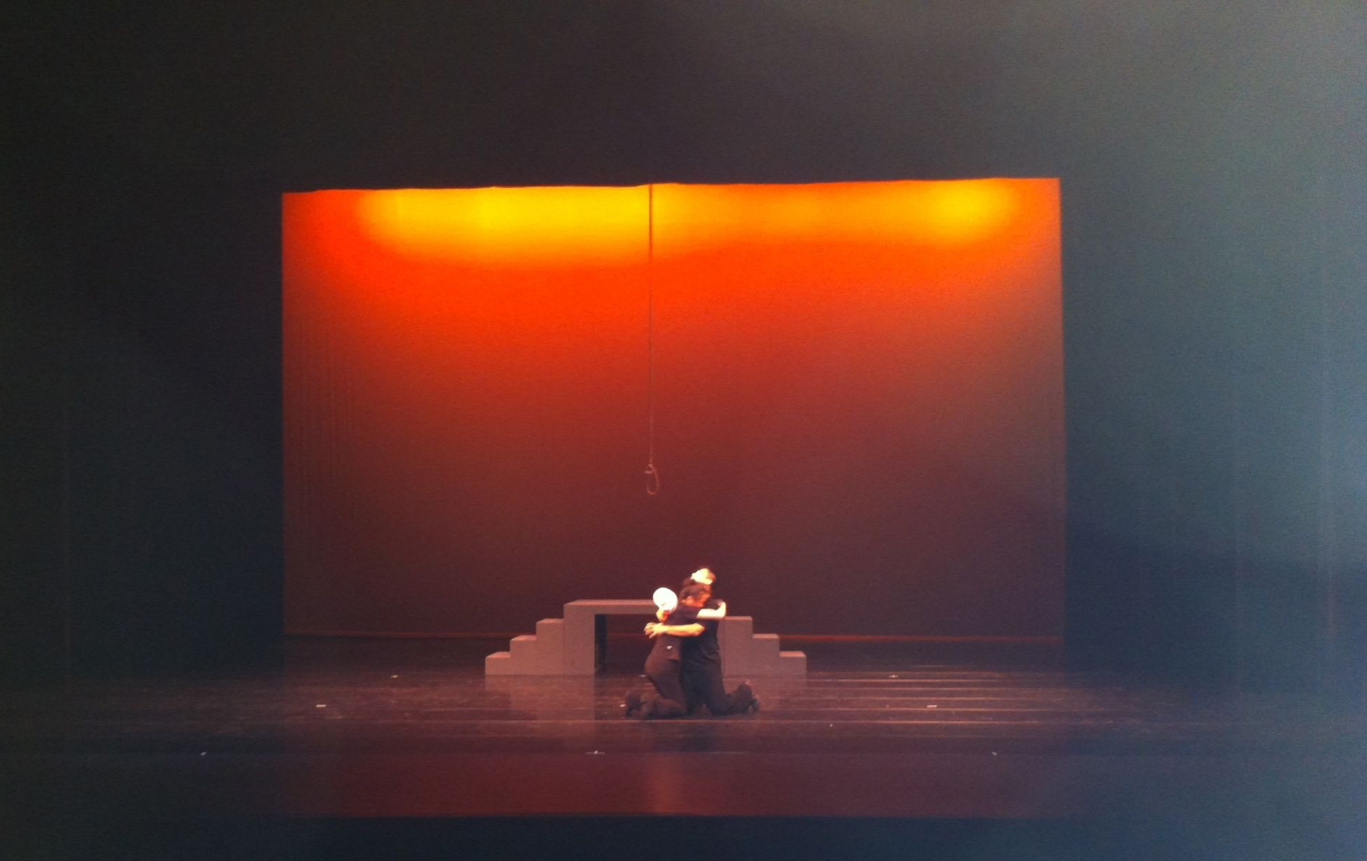《罗密欧与朱丽叶》是爱恨交织到极限的经典故事,两个结仇家族的孩子,因缘见面,互相产生好感,种种因素却使他们无法结合。神父提供朱丽叶一个好办法,没想到不知情的罗密欧先来到假死的朱丽叶身边,阴差阳错,最后两人都因为不能忍受另一边的离开而走向了绝路。在这个故事里,究竟是谁的操纵将爱情化成凄美,还是我们的内心都被一双无形的残酷之手操纵着。演出中大量运用了中国民间艺术和京昆为代表的民族戏曲元素,同时又进行了现代剧场的演义,使之具有十分强烈的民族气韵及形式感,特别是剧中所运用的中国提线木偶和面具的手法,在演出后都给予很高的艺术评价。另外,因为在演出前一个演员的意外受伤将原本四人的演出改为三人,每个演员的又多了人物角色,但是在卢昂老师和同学们仅有的修改排练中演出效果很流畅,还有了意想不到的效果,甚至有的观众并没有看出是缺了一名演员临时修改后的演出。这有考验了同学的应变思维和扎实的表演技巧。剧场的观众也对同学们的表演所感动,并提问说为什么导演系的学生可以演的这么好?我们的同学也回答了这个问题,这也跟在本科的学习中卢昂老师对于我们的要求有关,就是好的导演也是好的演员,并且给于我们很多实践机会去演出并提升自己。