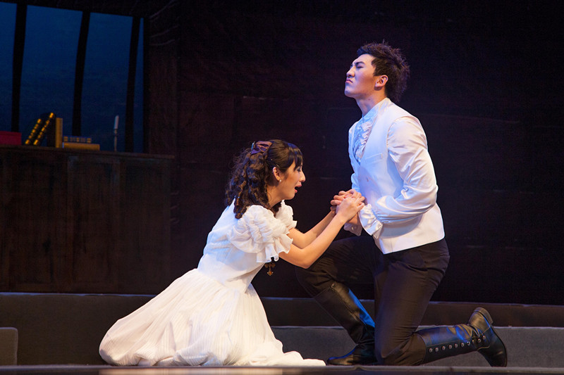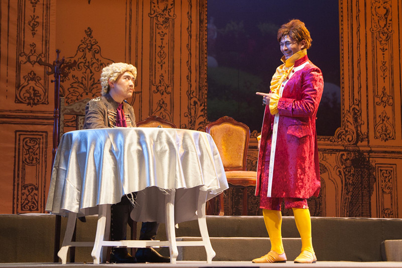 舞台舞美效果与演员服装化妆一如既往的成功。古朴的红色砖瓦墙与富丽堂皇的壁炉形成鲜明对比,表现了平民家庭与贵族家庭悬殊的差异。情妇的家里则用大片的红色绒布做背景,挂上两幅十八世纪德国贵族的肖像画,彰显她显赫的家庭背景。而两位女主角的纤纤细腰加上紧身胸衣,一派动静守礼淑女相。演员的变现力同样值得称赞。宰相时不时眯缝双眼,轻抚胡须,狡猾奸诈的性格表露无遗。米勒夫人唯唯诺诺,不敢于权贵势力抗争。斐迪南虽然有反抗封建暴力的精神,但封建贵族家庭与上流社会教养的烙印使他性格轻信多疑、高傲自负,这也为悲剧的结局埋下了伏笔。
