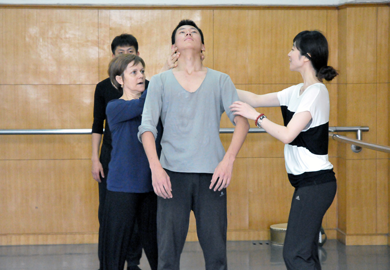 上午8:30,我院在专业教学楼一楼大厅成功举办了法国舞蹈周开幕式,法国专家的到来受到了学生们的热烈欢迎。此次活动出席的主要领导包括taptap点点体育副院长张伟令、上海市舞蹈家协会主席凌桂明、taptap点点体育舞蹈学院副院长李海霞等,并发表了简短而重要的讲话。开幕式结束之后,练功楼即开始进行如火如荼的教学活动。学生们分别分成芭蕾舞方向、现代舞一班、现代舞二班等三个班级进行教学活动。芭蕾舞班级的老师从细节入手,纠正平时训练中容易疏忽的细小环节,例如脚的位置、重心移动中脚与地面关系的变化、扶把的力量和重心等,通过这些细节来再次强调和强化芭蕾的基本原则。现代舞班级的老师主要引导学生如何放松,不强调更多的身体技巧,而是感受自己的身体,体验身体在不同空间、方位的感受,使身体更加自如流畅。