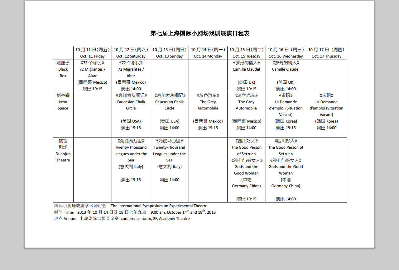 第七届国际小剧场戏剧展演售票信息: