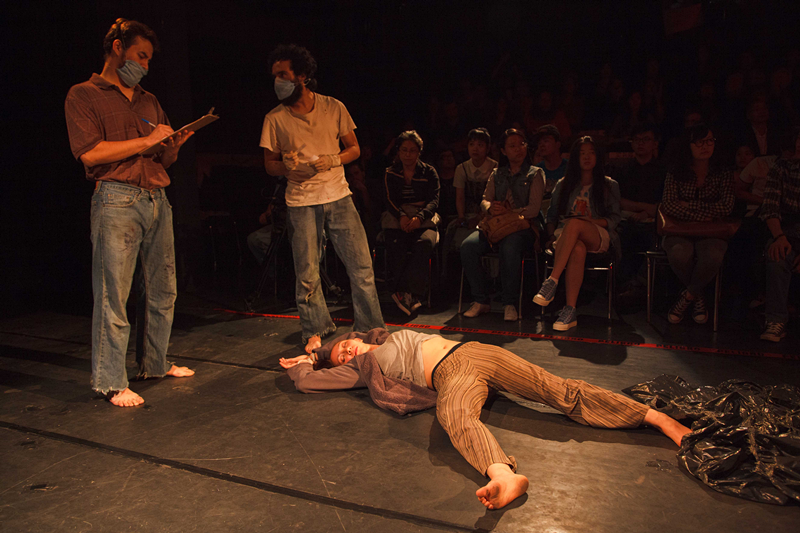 开场前半小时,黑匣子门口就聚集了一大帮观众。开场前十五分钟,观众还未能入席,工作人员表示墨西哥希纳埃剧团的演员还在热身。同时,工作人员提醒所有观众在迈入剧场前把手机调至静音。这一切准备工作的细致让我开始满怀期待,究竟这个来自墨西哥的话剧会怎样呈现?而在看完《72个移民》之后我才领悟,也许这样的专业精神,才能让所有的演员观众都投身其中,浑然忘我。