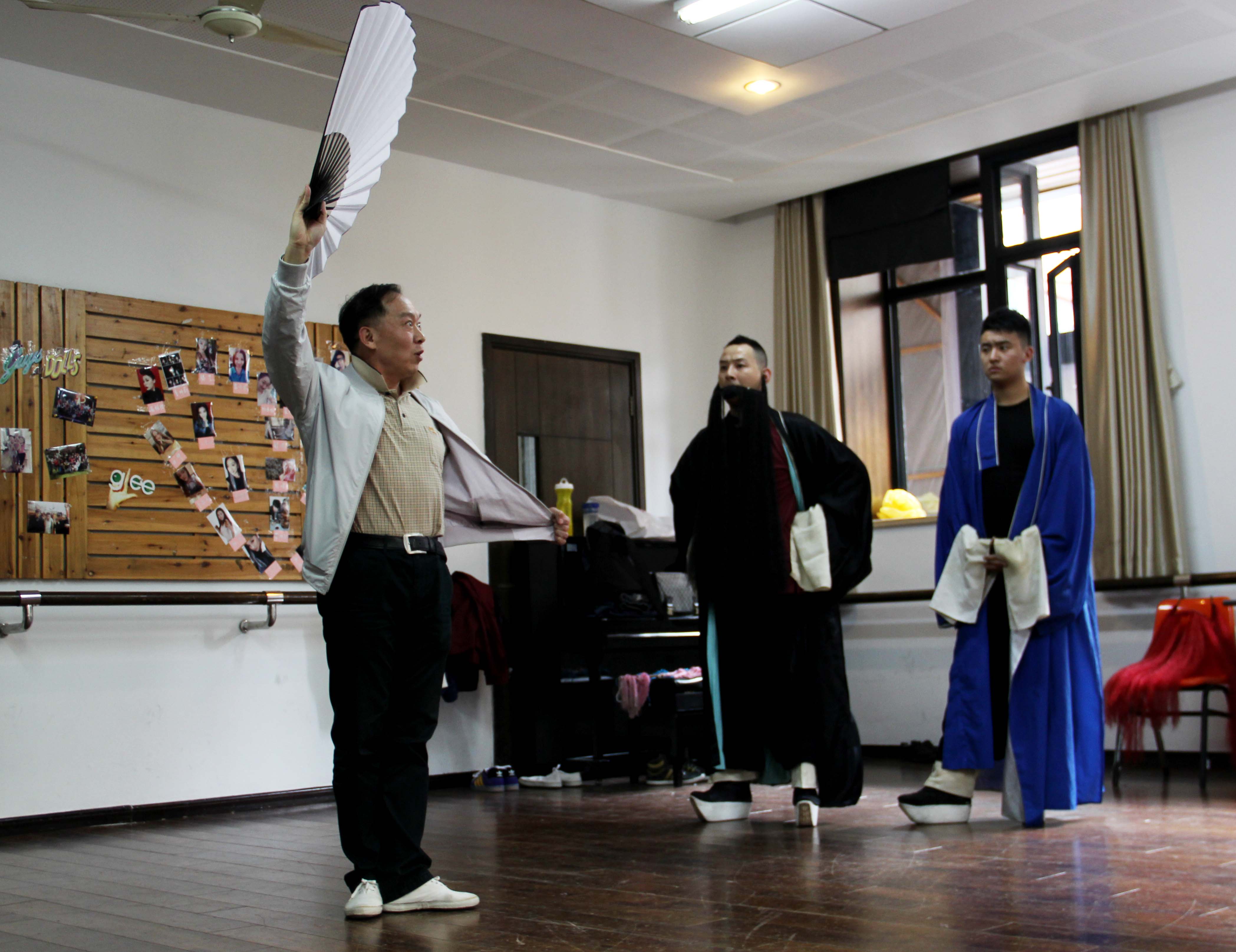 20日下午3点,一场关于戏曲武生公开教学课在红楼105展开。“开门办学”是此次创想周的一大特色。作为戏曲学院的骨干教师,王立军老师全心全意地为大家上演了一堂有趣的京剧表演课程。