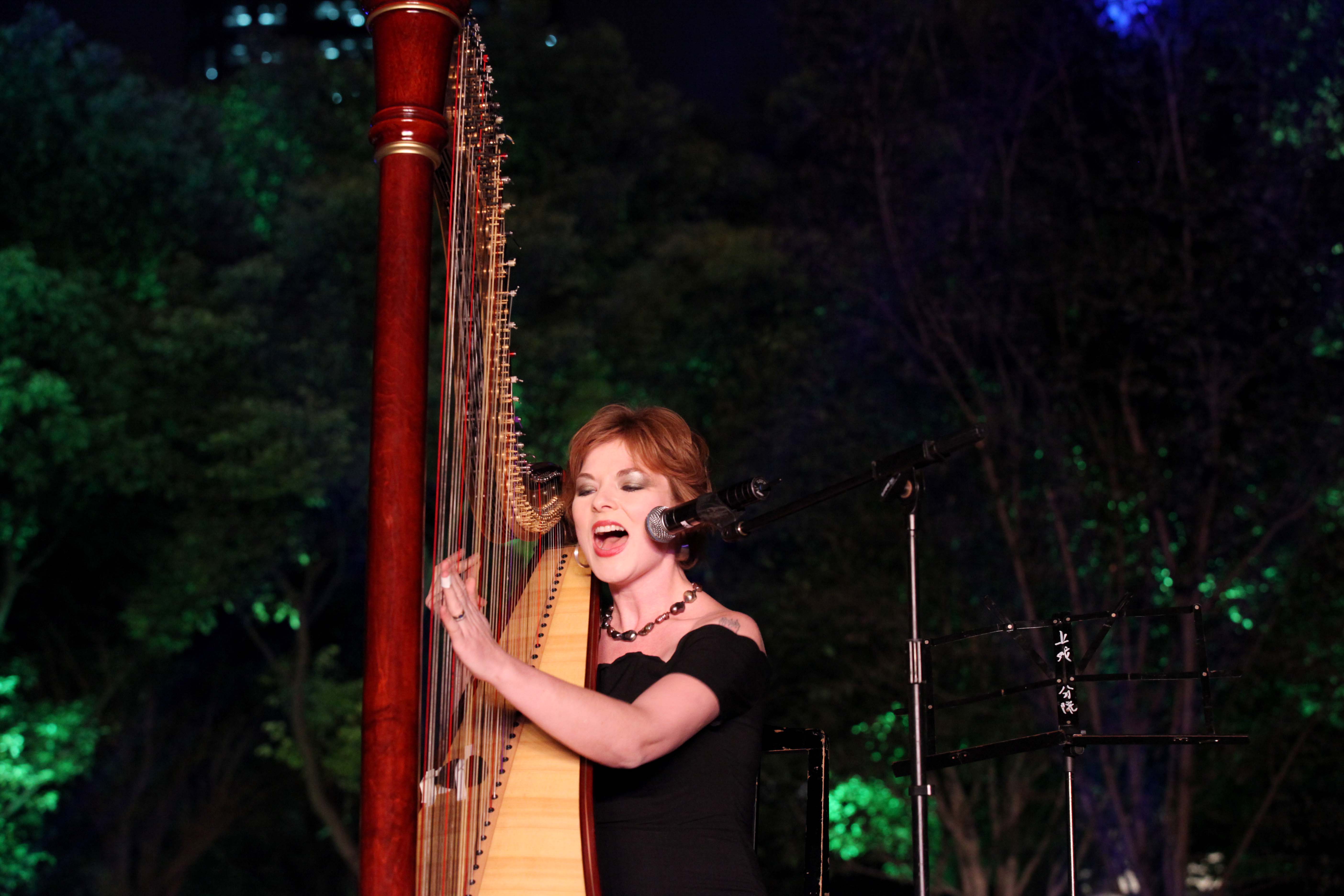 著名的竖琴演奏家Jessica用竖琴为我们演奏了Summer Time、Fever、My love等经典蓝调和爵士的曲目。她的演奏轻松而富有情调。Jessica在五岁的时候就开始学习竖琴的演奏,师从过很多竖琴大师但是她的演奏独树一帜。Jessica是将美声演唱与竖琴演奏相结合的第一人,独特新颖的演奏形式,轻松愉快的曲风为她赢得了阵阵掌声。她的手指在竖琴上拨动犹如精灵在跳舞一般,活泼灵动。竖琴美妙的音色与她优雅动人的歌声交融在一起,回荡在耳间,观众们仿佛置身与音乐的海洋,周围也仿佛点缀着灵动的音符。耳听她那如朝露般清澄的音色,眼看她那行云流水般的指尖演奏,音量虽然不算大,但柔如彩虹,诗意盎然,时而温存时而神秘,令观众难以忘怀。竖琴的外形精致,优美,极富艺术气质,广阔的音域,独特的演奏效果,余韵悠长、弹来趣味盎然,闻之令人心旷神怡。像月光下喷泉汩汩涌出的奇景美感,弥漫着诗样的气氛。