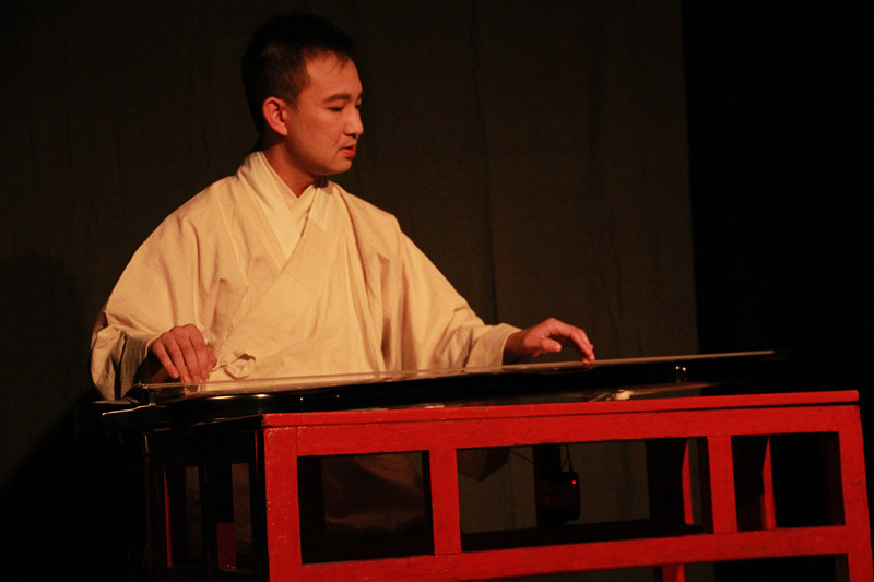 这部《聊斋》之所以会被我称道,是因为导演是一位懂戏曲的戏曲演员,而导演找的演员们都是一些从事国学的人——评书演唱家、古琴家等,他们的确可能在表演的规律上懂的不如我们学校的表演系学生多,但是他们自身拥有的国学内涵是和中国戏曲相连的。导演在用这些业余演员时就完全从他们个人的特色出发,弹琴的继续在舞台上边弹琴边演戏,说书的就是边说书边演戏。戏曲的程式并不是戏曲的精髓,戏曲的精髓是对中国传统文化的表达。而在《聊斋》中,这种表达被化为了导演对于演员舞台表达的idea,最简单的舞台布景、最诗化的台词等。是如春风化雨化到戏的每一寸每一里。把戏曲文化“渗透”,才是在当今社会戏曲创新里需要的。但反观之同样在创想周中以戏曲创新为目的演出的《融》,把戏曲沦为伴唱,低俗不堪,用乾旦艺术来满足低品位观众的审美情趣,随便唱几句杨贵妃虞姬的唱段就以为自己戏曲得不行,实在让人忍不住嗤之以鼻。