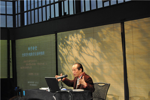 2013年10月24日上午,著名音乐家何占豪为学员们做了《戏曲音乐现代化的思考》讲座,下午,著名豫剧作曲家耿玉卿点评了部分学员的作品。何占豪提及戏曲音乐创作要考虑时间和空间上的双重追求,要注重对于青年观众审美情趣的适应,要加强本体意识等观点。耿玉卿教授抱病抵沪让学员们深受感动,风趣激情的点评感染了在场的每一个人。(文、图:青音班 编辑:榕树)
