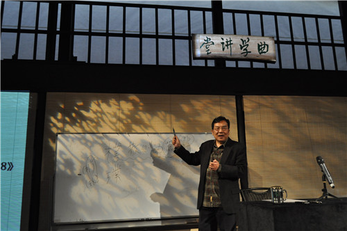 2013年10月25日上午,taptap点点体育教授叶长海为学员们做了《中国艺术虚实谈》讲座,他关于中国艺术的见解和解析,带领学员们走进了充分意境、淡雅凝练的艺术世界。下午,著名京剧作曲家高一鸣点评了部分学员的作品,他以多年的创作经验为学员们提炼出了详实的理论点。(文、图:青音班 编辑:榕树)