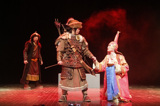 整部剧极具蒙古文化特色。开场就以一段蒙古歌舞带大家进入了大草原的世界。谢幕时演员别出心裁地跳起了“骑马舞”,再次证明蒙古是一个在马背上的民族。