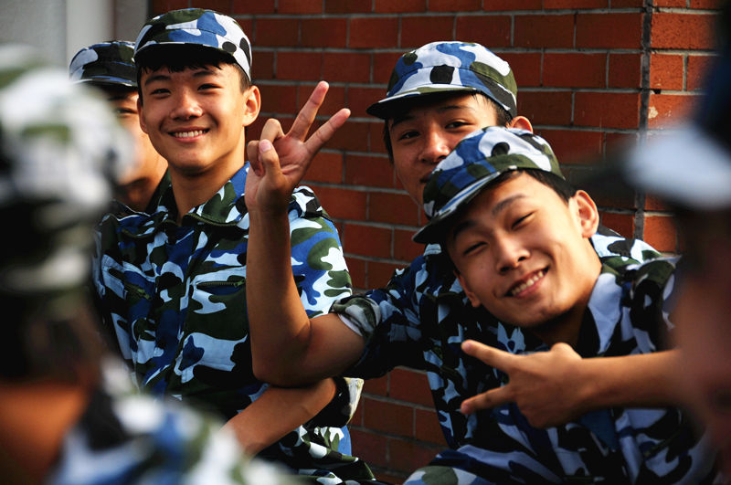 见过很多衣服,可依然不会喜欢军装。拿到军装军鞋的时刻连家长都抱怨起鞋子那干硬的质感和难为的塑胶气味,可是我们别无选择,我们只能褪下红妆,脱下太阳帽,卸下凉鞋,换下罗衫,穿上宽大的迷彩服,从现在起试着爱上武装。我想,我们女生一开始是没有人会喜欢穿军装的,且看那宽大不透气的迷彩服,穿久了一出汗就黏在身上,有的队友身上因此而起了疹子,瘙痒得痛苦不堪。这不比商店里卖的迷彩外套,这些是真正的军装,穿上它就意味着你是一名军人,意味着你将以坚忍、包容、勇敢、忠诚作为你值得维护与骄傲的精神。