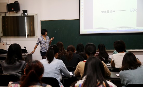 今天创意学院的杨青青教授给我们带来了一场别开生面的演讲。她带来的“转媒体时尚艺术讲座”这一新颖的命题让大家十分好奇,纷纷前来倾听学习。