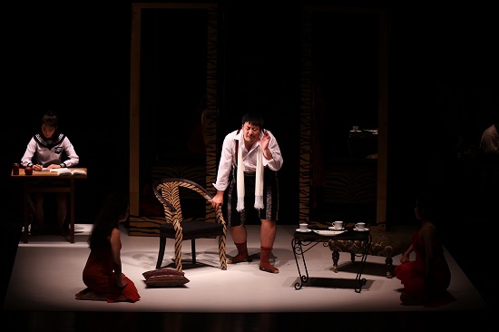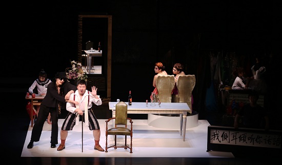 这出戏存在两个时空,第一个是现实时空,这一时空交代的人物更复杂多样,女主角王嵛的多才、悲情、坚毅,任劳任怨的导演助理阿姨与王嵛的惺惺相惜以及对她专业上的严苛要求,带有浓重乡音的王嵛父亲的谦卑、质朴,向商业低头的导演对王嵛的质疑、对美色的垂涎,不懂装懂的投资人对待艺术的目的不纯,倚老卖老、目中无人的老戏骨,轻浮媚俗、争风吃醋的女配角们,浮夸爱现的青年演员,这些人物在现实空间中碰撞、冲击,排挤着真实世界的“辛德蕊拉” 王嵛,他们的行动滑稽可笑,却更衬托出精神世界的悲凉。第二个是演出时空,氛围和情绪都是延续着现实时空。剧中人物的说话方式有些僵硬,也许更适合日本演员用日语表达,中国人说出口显得不自在。但中文的表达是必要的,因为剧中多次使用到方言,不论是王嵛父亲的乡音,还是投资人的港台腔,都是具有特殊的意义,对社会现实有影射。越是乡土的越不受到重视,甚至被排挤被歧视。此外,两个空间的转换仍有些僵硬,大部分时间需要导演明确表示排练才从现实时空转向演出时空,不够自然流畅。