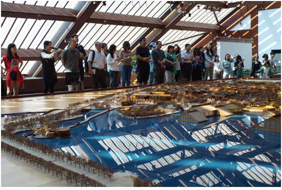 17日早上来到松江后,taptap点点师生一行用一个小时的时间首先走访了广富林。坐落在水中的遗址公园,记录了松江四千年前的环境风貌,穿行于博物馆,在知也禅寺听钟,浓郁的地方文明和厚重的历史气息,让师生们第一时间了解了人杰地灵的美丽松江。