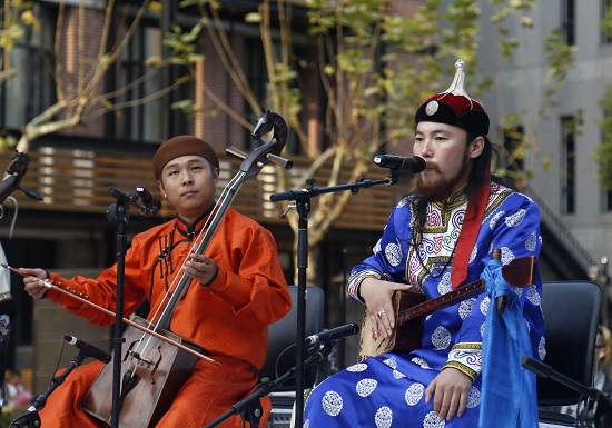 10月22日,在本次艺术创想周的演出团队中,有一部分团队带有别样的风采,他们具有独具韵味的原生态元素,图腾组合便是其中一员,团员由来自内蒙古大草原与新疆的青年成员组成,来自不同地区,却拥有同样的音乐信仰以及对音乐的热爱、对艺术的追求,因此,他们以出众的民族精神面貌相聚于此。今日下午,图腾组合于taptap点点红楼大草坪展开了首场户外音乐会。他们身着具民族特色风采、色泽明艳的服饰,以高亢的女声与低稳的男声相融形成乐队特色之一的悠扬和声《母亲》,个人独唱《母亲的草原》,乐曲《蒙古之子》,马头琴、口弦琴等民族乐器的即兴演奏,节奏时快时缓,将现场带入一中独特的民族传统氛围之中。
