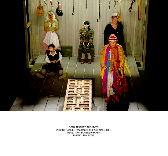 六种语言同时存在于一个剧场一场演出之中,仿佛巴别塔刚刚崩塌之后,人类抱着残存的希望用对方根本听不懂的语言交流着,嘶吼着,呐喊着,将力量通过台词挥掷,但毫无回响。多国语言演出在上海不算什么新鲜事儿,为了演出效果不放字幕的也不是第一次见了。有的戏能做到让观众毫无障碍的理解,有的则故意展示人与人之间语言沟通的乏力。《慢性人生》的多语种台词或许是为了表达语言的无力感,但这种方式使观众理解演出更有难度,不然巴尔巴先生也不会在演出前为大家做讲解。所幸在剧场里不止有六种语言存在,第七种语言使我们更容易发自内心的感受到它的魅力,那就是来自欧丁剧团的剧场语言。