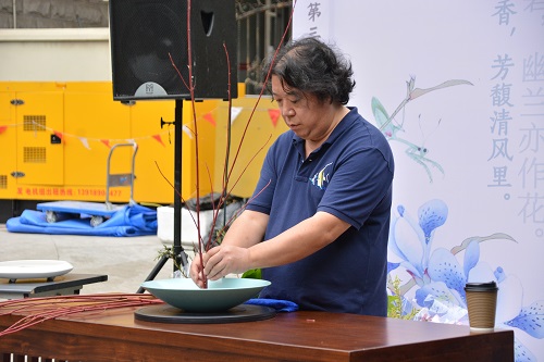 活动一开始,谢明老师拿起麦克风,自然而简洁地做起自我介绍,之后三言两语,简谈插花花艺的历史和溯源。接下来,在亓季松老师的主持下,谢明老师谈到插花的基本概念和一些要求、理解,他说:“插花需要掌握对植物学的基本认知。”这其中包括了对植物的类别、种植等方面的细致区分,同时他也以“莲花”和其他一些大家熟知的植物为例,讲述了植物知识对于插花艺术的重要性,期间还伴随一些恰到好处的比喻,诙谐之外又在情理之中。